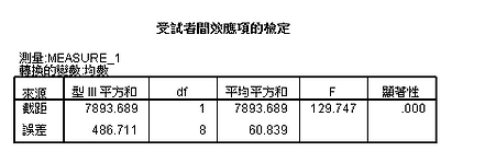 此外,由受試者間效應項的檢定,也可以了解本次9位受試者的分數也有明顯個別差異.